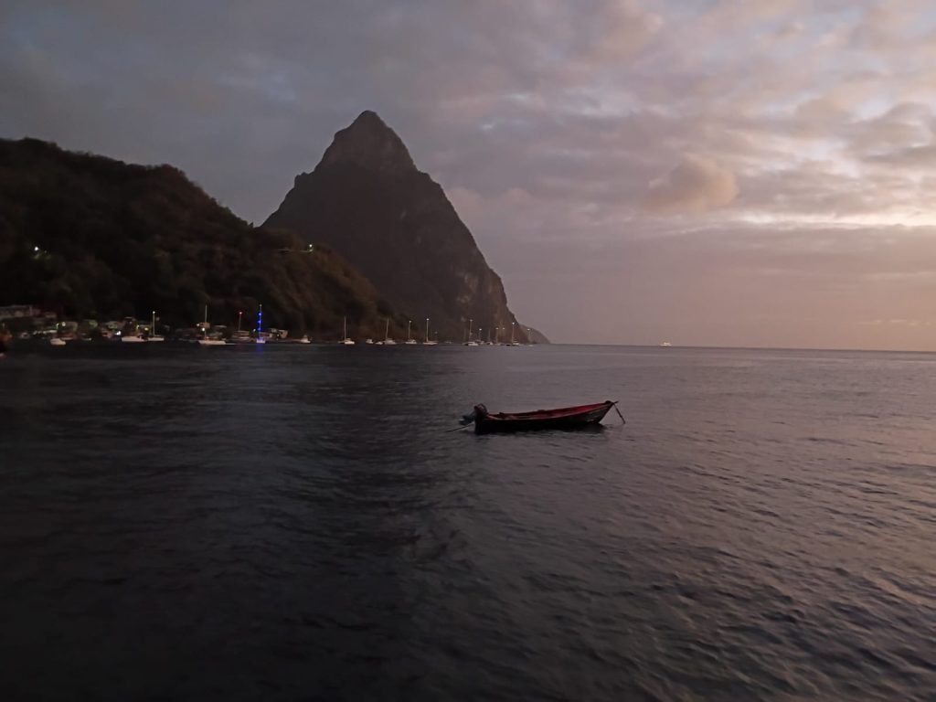 Aerial view of a coastal town with beaches, turquoise water, and surrounding hills
